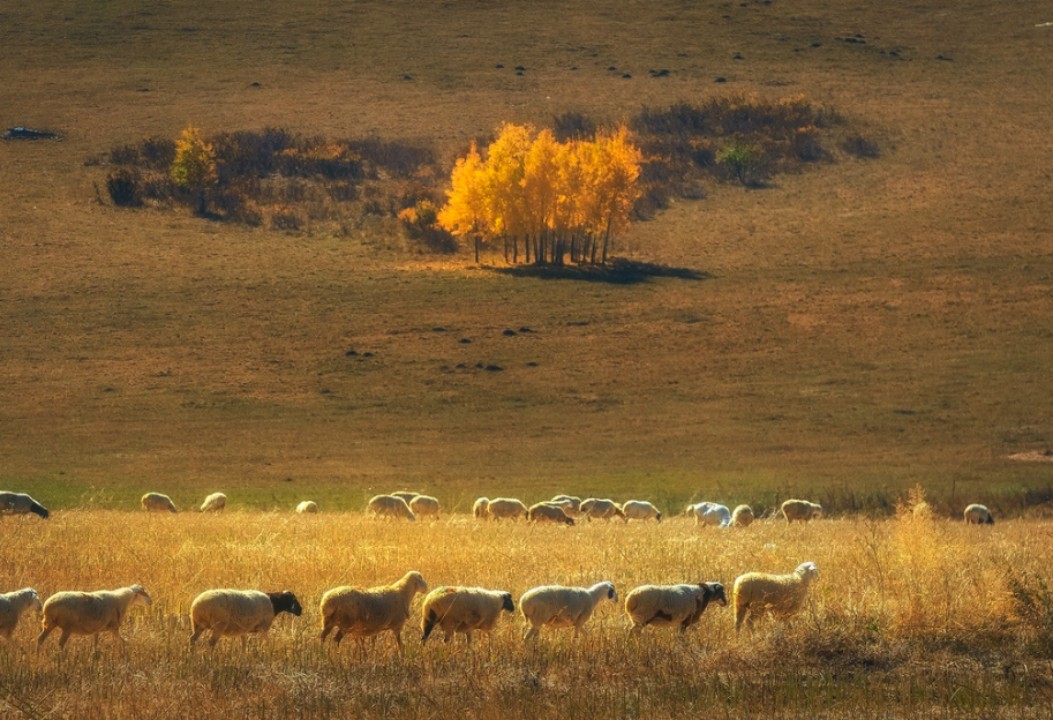 当秋风以最暖和的姿态掠过地面,草原便悄然换上了它一年中最荣华的一稔,那是一种从翠绿千里淀而来的金黄,不喧哗,却铺展到天的相当,仿佛整片内蒙高原齐被镀上了一层流动的暖光。锡林郭勒的草叶虽已泛黄,却在蓝天白云的烘托下显出几分腾贵的静谧,风车在风口迟缓动掸,牛羊如洒落的星辰,在宽绰的萧索中酣畅啃食,所有世界齐慢了下来,连技术也仿佛在秋阳里打了个盹。