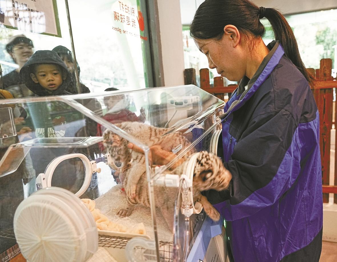 现在,旅客可通过育幼科普馆的玻璃幕墙不雅赏四只小老虎的平日。按照策划,待它们成长3个月后,将认真走出保温箱,转入户外展区与广宽旅客碰面。